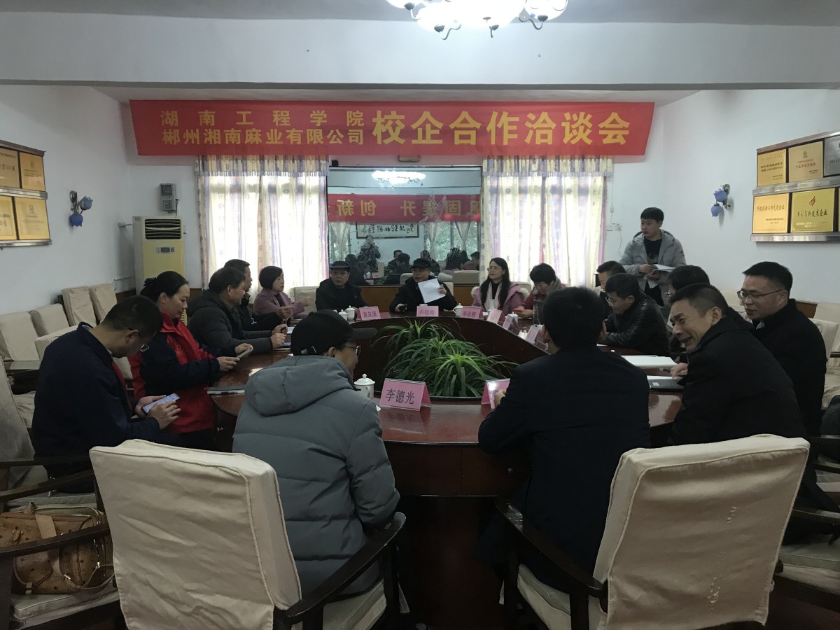 2月5日,是中國(guó)傳統(tǒng)節(jié)日--元宵節(jié),湖南工程學(xué)院校長(zhǎng)易兵教授率人事處處長(zhǎng),教務(wù)處處長(zhǎng),宣傳部部長(zhǎng),紡織服裝學(xué)院院長(zhǎng),國(guó)資處處長(zhǎng),后勤基建處處長(zhǎng),創(chuàng)新創(chuàng)業(yè)學(xué)院院長(zhǎng),經(jīng)濟(jì)學(xué)院院長(zhǎng),等10人一行來(lái)郴州對(duì)我司考察,并與我司董事長(zhǎng)陳平南先生洽談校企合作事宜。